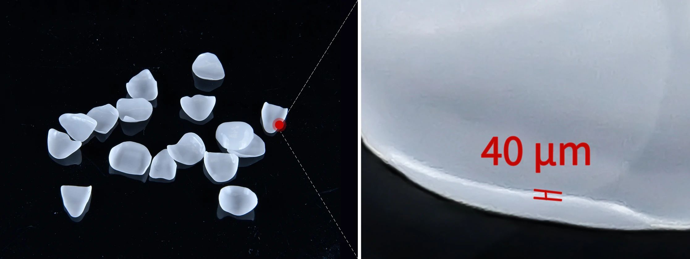 “極薄強韌牙齒貼面”是摩方精密利用顛覆性技術帶來的突破性應用產品之一。傳統機械切削的“牙齒貼面”產品厚度一般在400微米以上,而摩方精密利用高精度3D打印技術制造的“牙齒貼面”可將厚度降至100微米以下,最低厚度可達40微米,且強韌性超越以往產品,可以幫助患者在進行牙齒美白、修復時,更大程度地減免磨牙步驟,保留牙釉質,帶來無痛治療體驗。