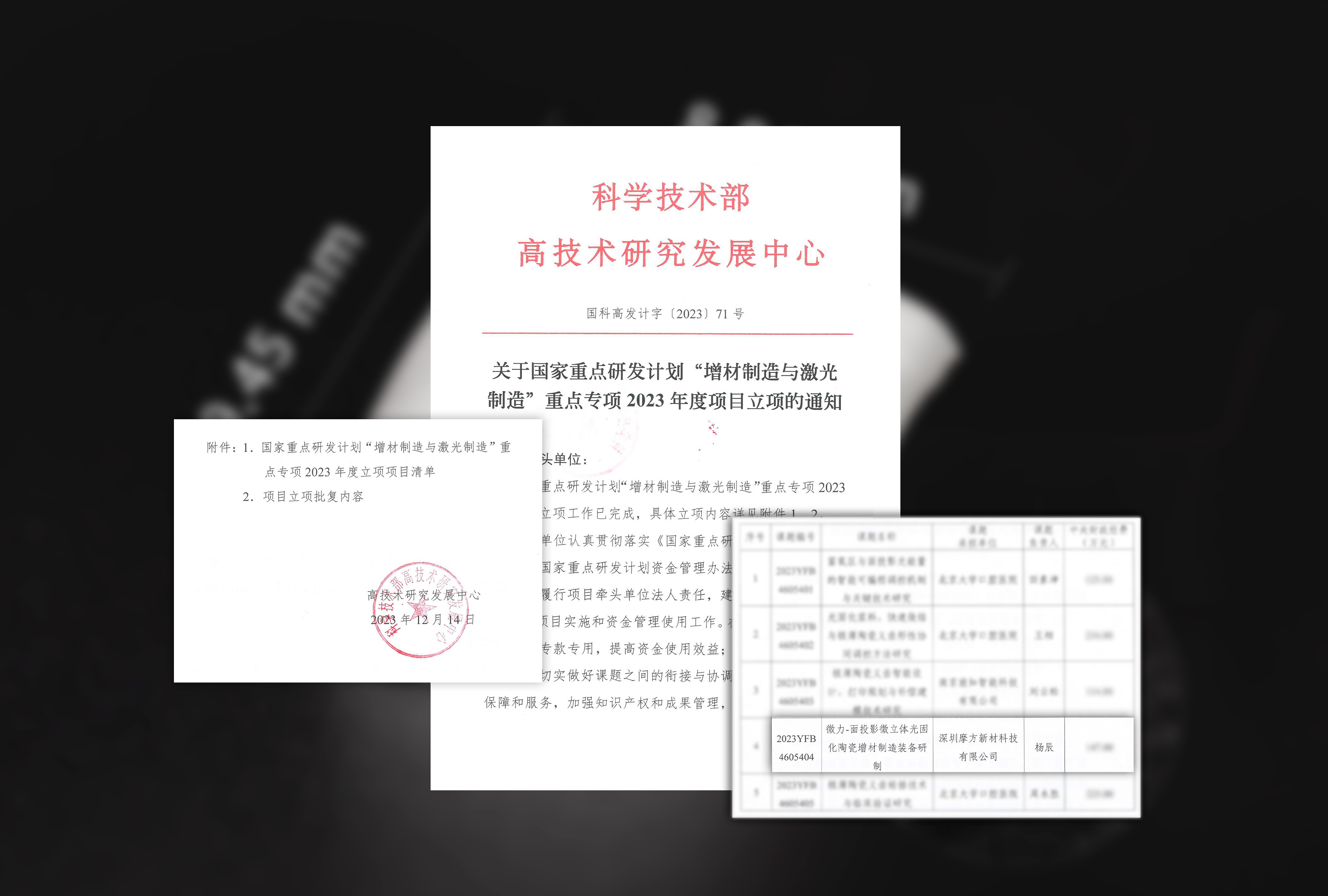 近日,科技部發布國家重點研發計劃“增材制造與激光制造”重點專項項目立項通知。由重慶摩方精密科技股份有限公司(以下簡稱“摩方精密”)全資子公司深圳摩方新材科技有限公司牽頭開展的國家重點研發計劃重點專項項目“極薄強韌陶瓷義齒微立體光固化增材制造技術與裝備”獲批立項。