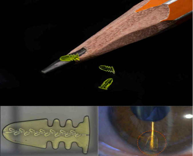 圖:摩方精密生產的青光眼導流釘,為患者帶來了全新的手術選擇
