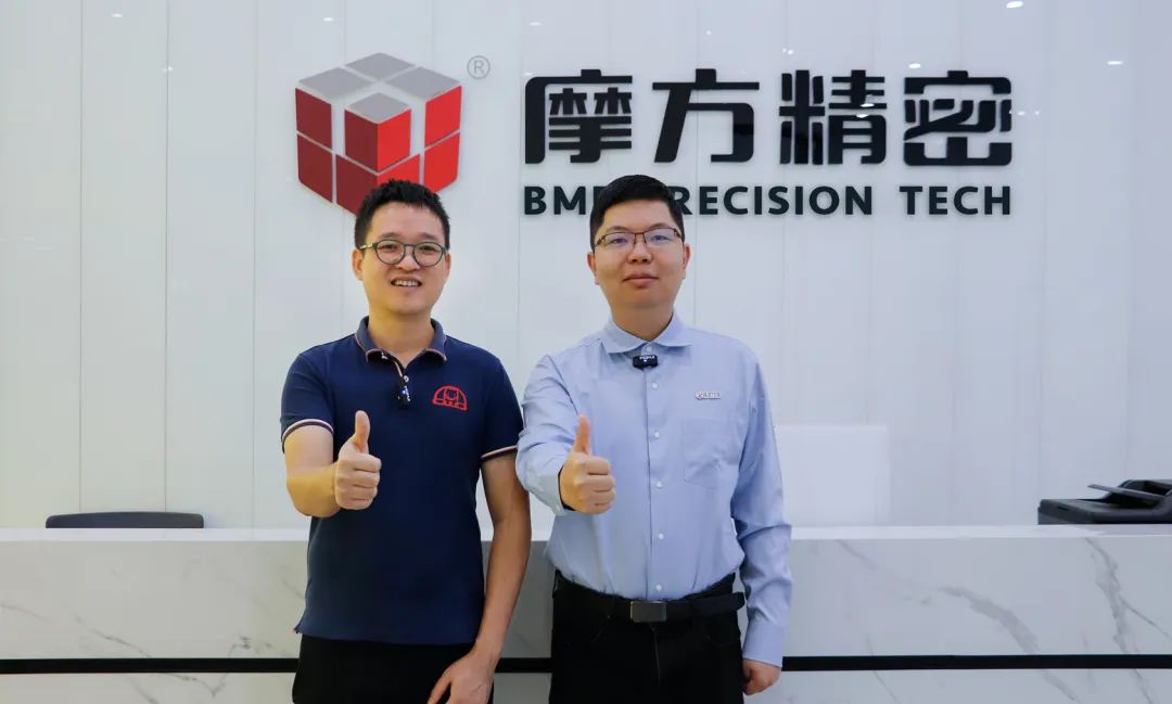 南極熊(右)專訪摩方精密市場部總監邢羽翔(左)