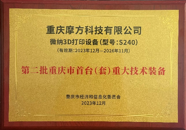 近日,以“向‘新’而行,創新不止”為主題的2024重慶市首臺(套)重大技術裝備新品發布會順利舉行。摩方精密的兩臺(套)設備microArch? S230和microArch? S240入選第二批“69件新產品”名單,并獲正式授牌。